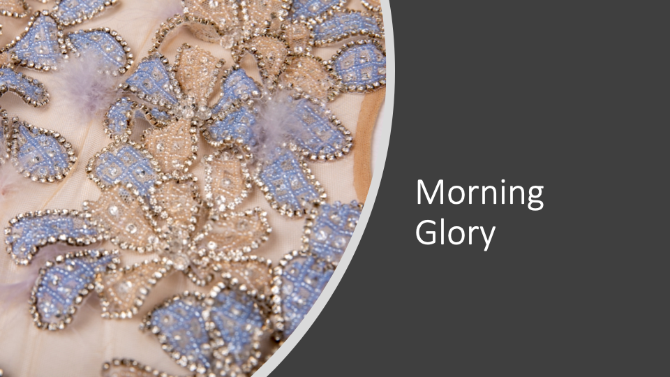 An ethereal shade of peach, featuring an intricate design of morning glories with dozens of coloured beads.